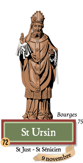 D’après les anciennes traditions de Bourges, le premier évêque de la ville est saint Ursin, lequel se trouve être Nathanaël, ce disciple du Christ que Jésus admira : « Voici en vérité un Israélite sans détour » (Jn 1,48). Il fut l’un des soixante-douze disciples et choisi pour faire la lecture lors de la dernière Cène. Envoyé par saint Pierre dans le Berry, il fonda la cathédrale Saint-Etienne en y déposant des reliques du sang du premier martyr, qu’il recueillit lui-même à Jérusalem. Il mourut un 29 décembre et ces reliques furent miraculeusement découvertes en 560, par saint Auguste et saint Germain de Paris : la date de la translation qui suivit, 9 novembre 560, devint le jour de sa fête.