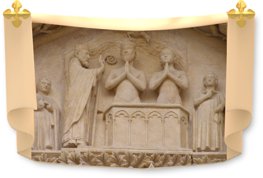 Or en ce temps-là vivait un très noble sénateur, nomme Léocade, qui était pour la Gaule ce qu’Hérode était pour la Galilée. Il résidait à Lyon mais possédait à Bourges des écuries et un grand palais. Ursin obtint de lui dans un premier temps les écuries, puis le palais même de Léocade, dans lequel il put déposer la relique précieuse du sang de saint Etienne : c’est ainsi que la cathédrale actuelle de Bourges s’origine dans le palais de Léocade, dont le baptême est représenté sur le tympan Saint-Ursin.